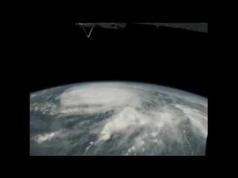 Já, na câmara colocada na estação espacial ISS você pode acompanhar a passagem do furacão Irene.